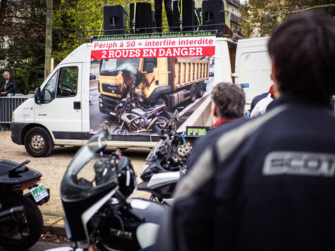FFMC (Fédération Française des Motards en Colère) demonstration against the 50km ring road. From avenue Foch to Hôtel de Ville via the northern ring road.