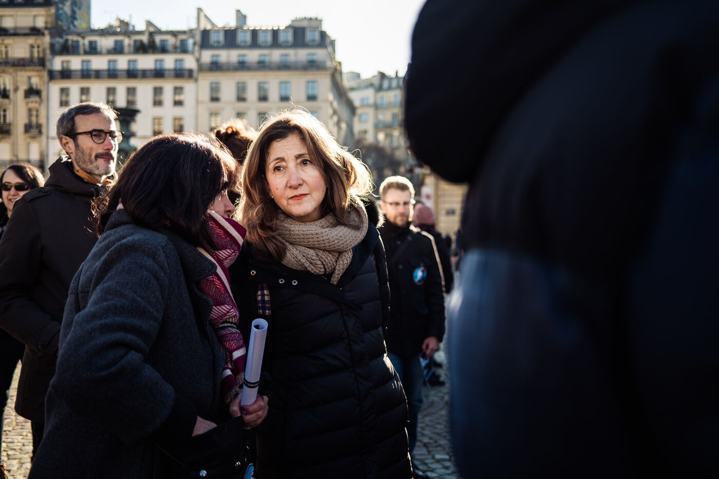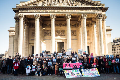 Rassemblement devant le Pantheon pour Cecile Kohler, Jacques Paris et Olivier Grondeau otages Français en Iran.