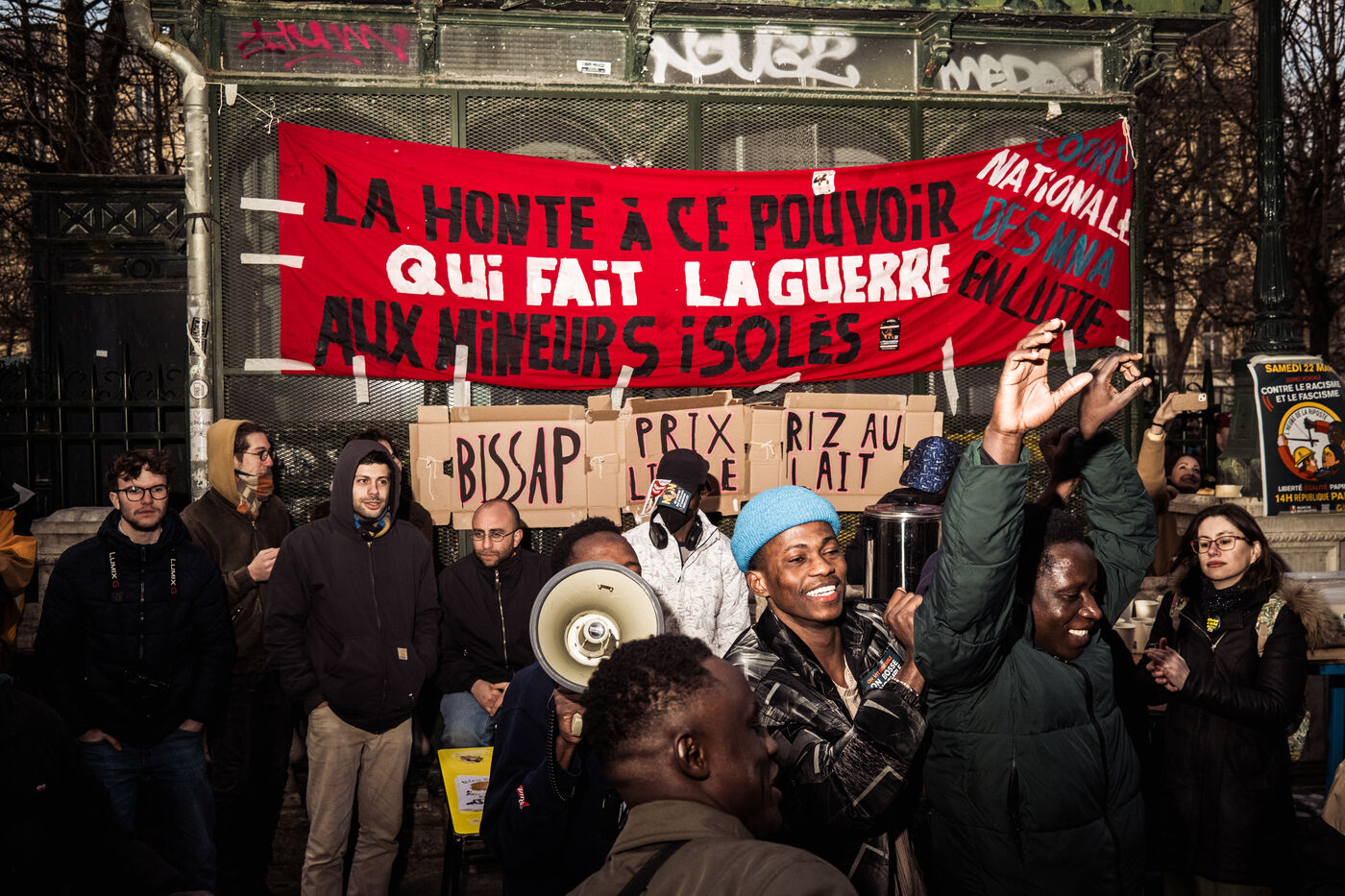 Rally in support of the unaccompanied minors occupying the Gaité Lyrique