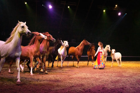 Créé chaque année avec des artistes d'exception, cet incroyable show tout public, mariant les arts équestres aux arts du cirque et de la rue transporte les spectateurs dans un ailleurs rêvé."