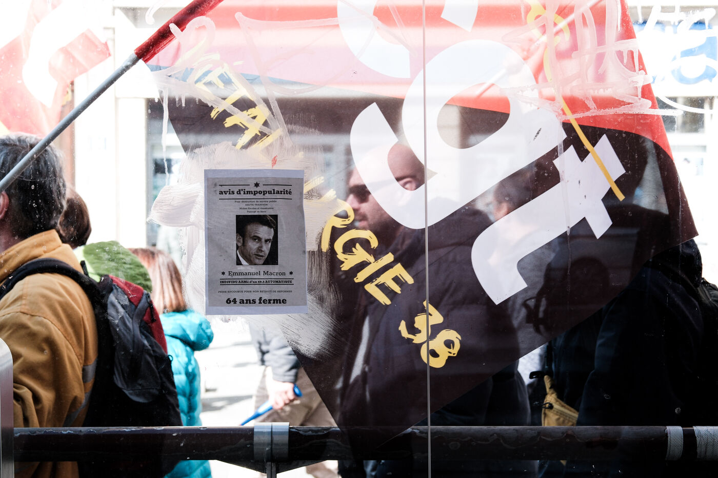 The fist raised against the reform : for the eighth time since January the 19th, the first act of the protest, thousands of people demonstrated in the streets of Grenoble at the call of the trade unions to protest against the Government's pension reform.