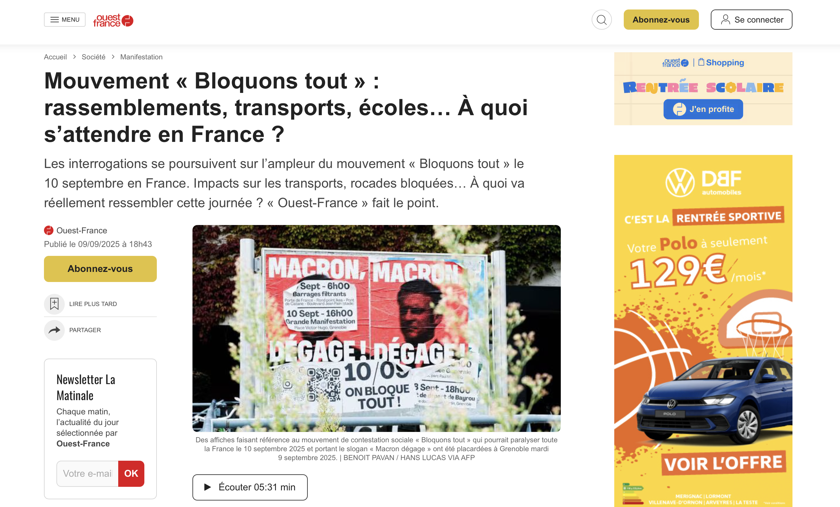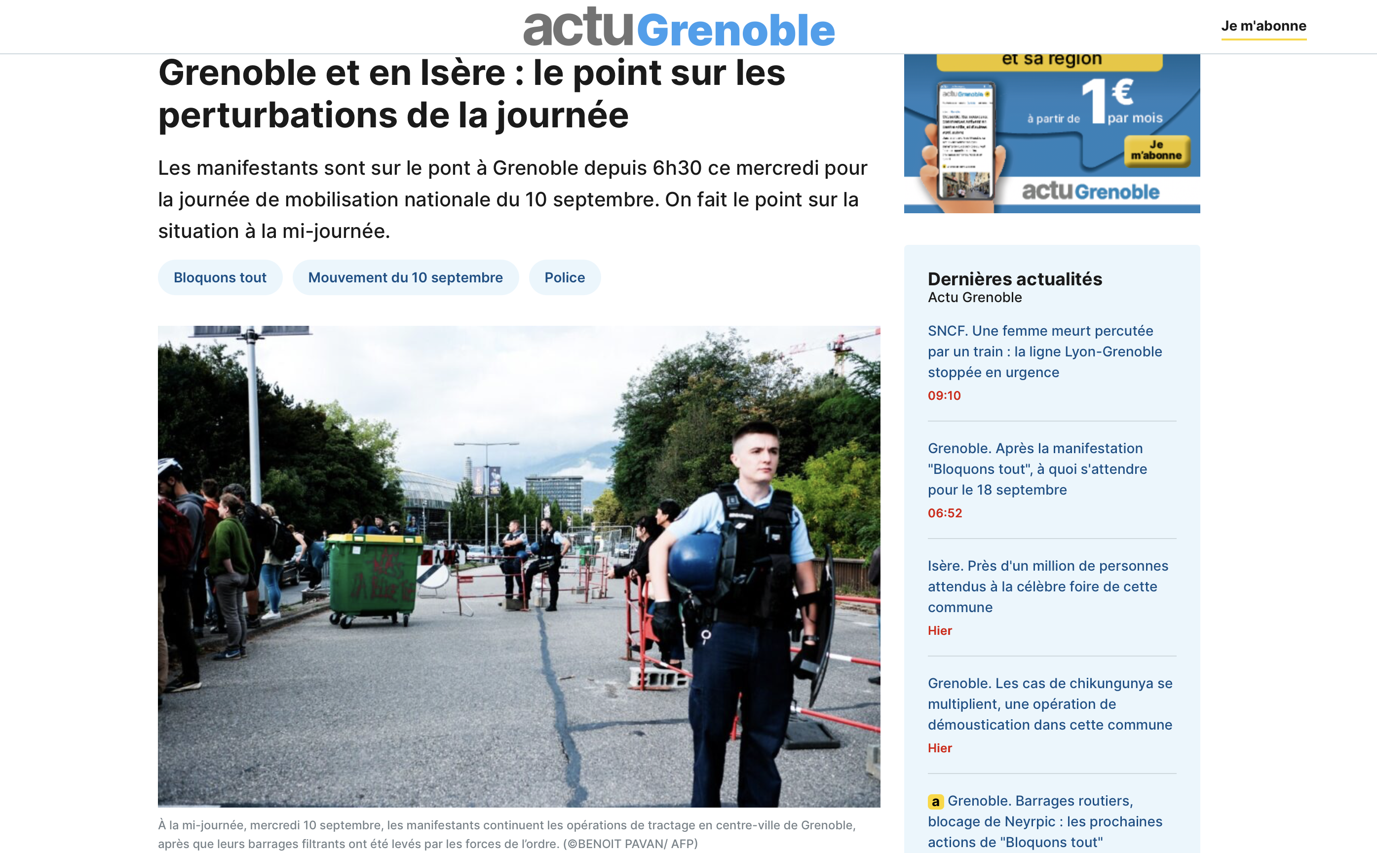 Benoit Pavan Publications Séries / Archive Culture — Environnement — Guerre et conflits — Politique — Société — Spiritualité — Sport Sélection de séries [WEB] Radio Télévision Suisse - via AFP | Laura Wandel [WEB] Reporterre - commande | Restauration d'une mare [WEB] The Epoch Times - via Getty Images | Bloquons tout [PRINT] Marianne | Bloquons tout [WEB] Alternatives Économiques - via AFP | Bloquons tout [WEB] France 3 Alpes - via AFP | Bloquons tout [WEB] France Info - via AFP | Bloquons tout [WEB] Le Nouvel Observateur - via AFP | Bloquons tout [PRINT] La Croix | Bloquons tout [WEB] Vert - via AFP | Bloquons tout [WEB] Actu.fr - via AFP | Bloquons tout [WEB] Radio Télévision Suisse - via AFP | Bloquons tout [WEB] Radio Télévision Suisse - via AFP | Bloquons tout [WEB] France 3 Alpes - via AFP | Bloquons tout [WEB] Ouest-France - via AFP | Bloquons tout [WEB] Courrier International - via AFP | Bloquons tout [WEB] Brussels Signal - via AFP | Bloquons tout [WEB] Konbini - via AFP | Bloquons tout [WEB] The Epoch Times - via Getty Images | Bloquons tout [WEB] Upday News - via Getty Images | Bloquons tout