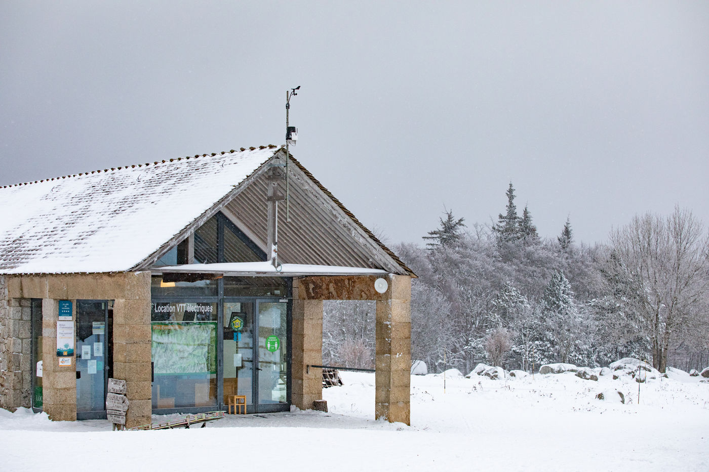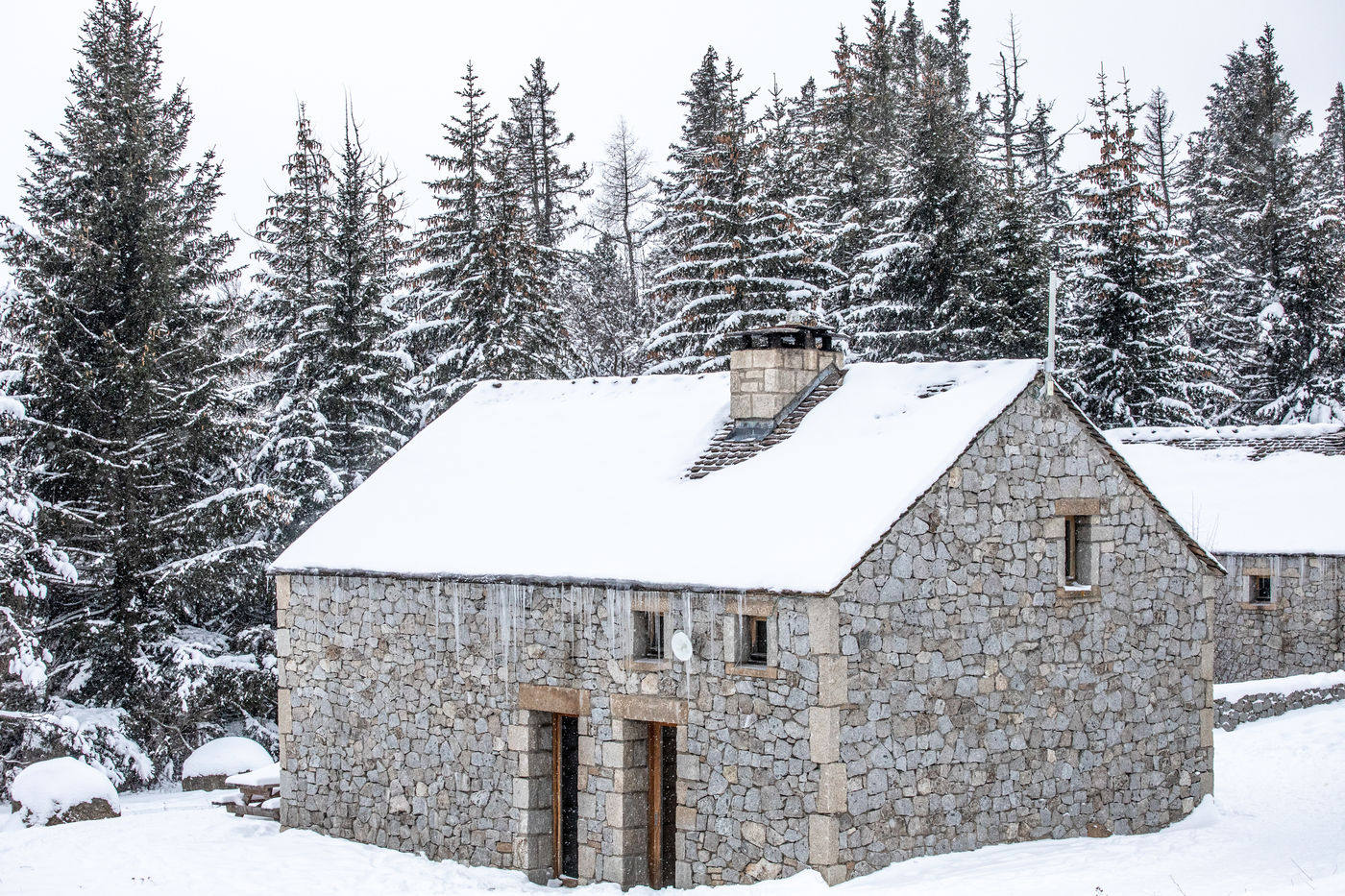 Nature resort of Mas de la Barque in Lozere (48). It is a typical mountain resort of the inhabitants of the region, of the Gard and Lozere to practice winter sports (snowshoeing, ski touring...). January 2021, Villefort, Lozère.
