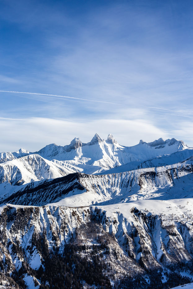 Photographies des paysages enneigés dans les Alpes françaises, décembre 2021 (Aiguilles d'Arves, Mont Blanc, Glacier de Saint Sorlin, refuge de l'étendard...).