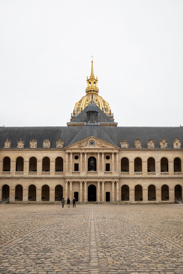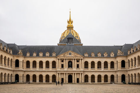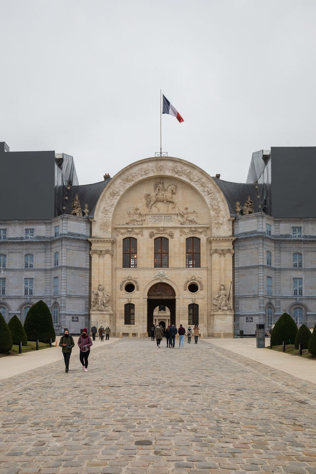 The Hôtel National des Invalides in Paris, is a building in honor of the armed forces. It was built in 1670 under the impulse of Louis XIV. Illustrations of the building and the courtyard of honor, January 2022.