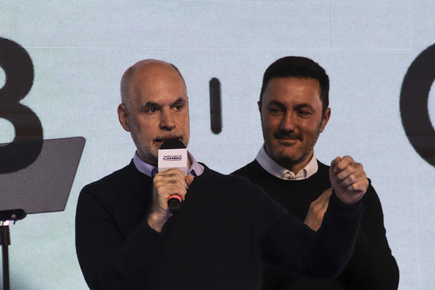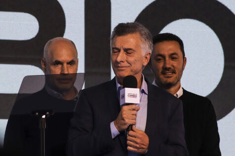 The candidates of "Juntos por el Cambio" (Together for Change) greet their supporters after receiving the results of the primary elections.