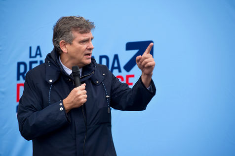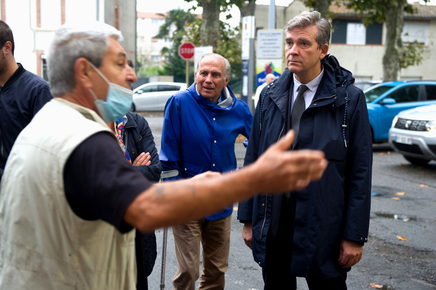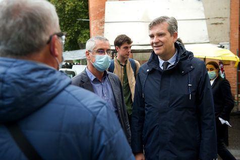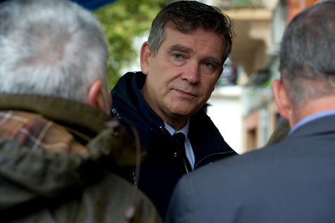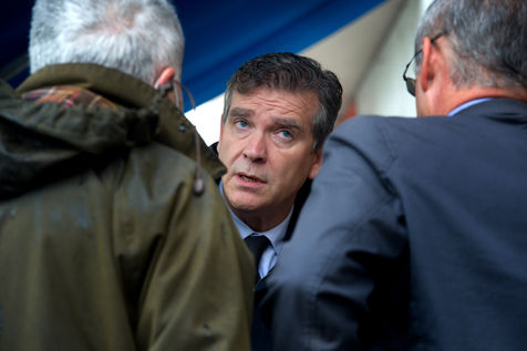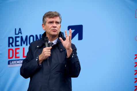 Arnaud Montebourg, former Minister of Economy and former member of the Socialist Party, candidate for the presidential election of 2022, visits a market in the Haute Garonne.