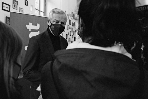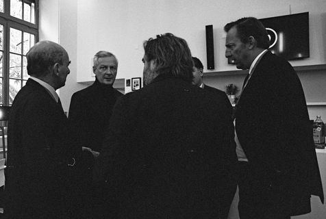 Portrait of Bruno Le Maire, Minister of the Economy, Finance and Recovery. A portrait taken with a Kodak TriX and a 24 mm camera, much more discreet than our big digital SLR cameras. During the minutes that follow, the minister almost forgets my presence, jokes and comments on the beginnings of the presidential campaign with the people present.