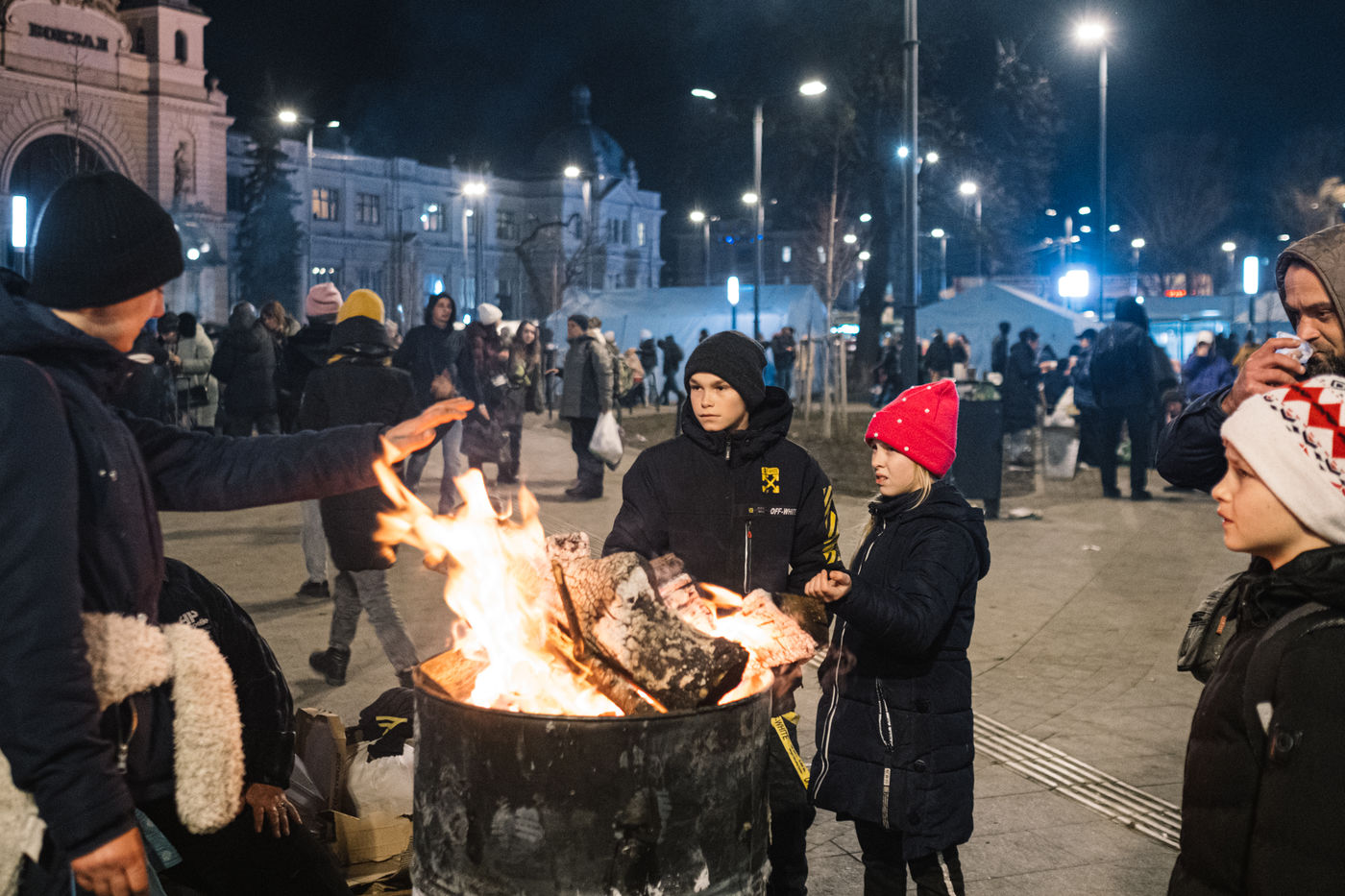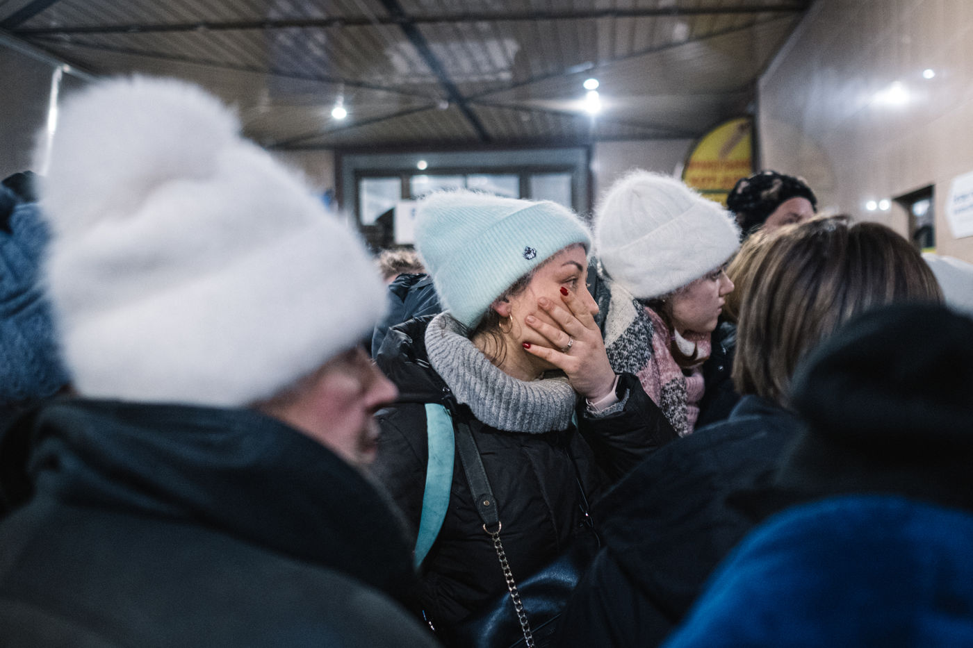 Il fait -3 degrés mais des milliers de familles attendent encore pour prendre un dernier train vers la Pologne ou la Hongrie.