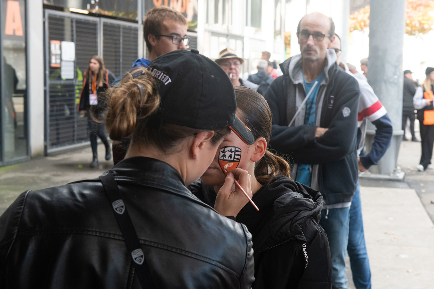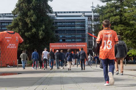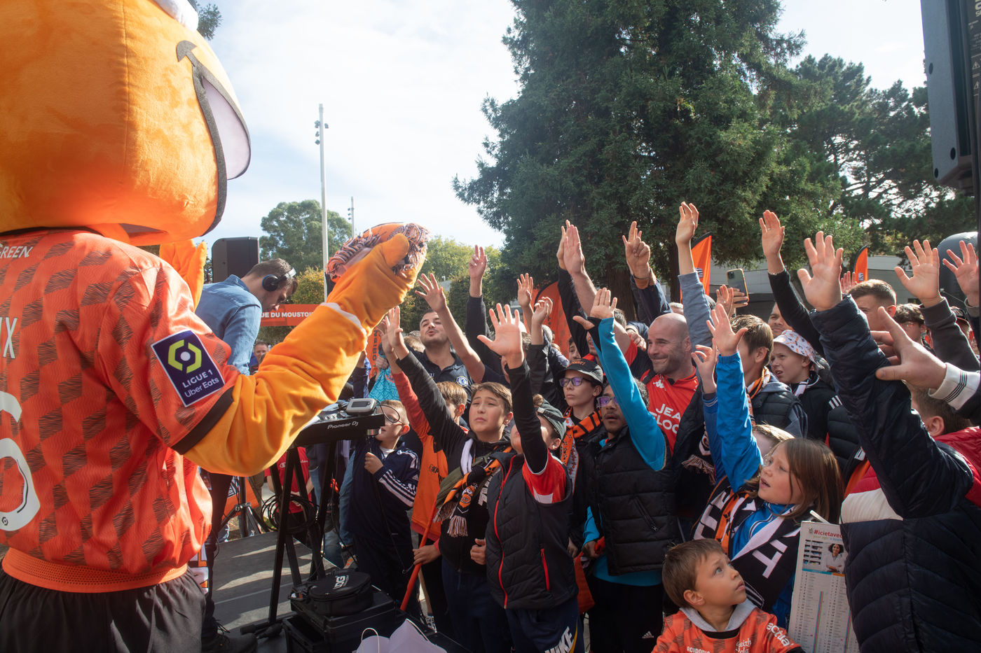 Les supporters du FC Lorient, actuellement dans le groupe de tête du championnat de France de football, dans la Fan Zone du stade du Moustoir. Un secteur d'animations dédié aux jeunes, aux enfants et à leurs familles.