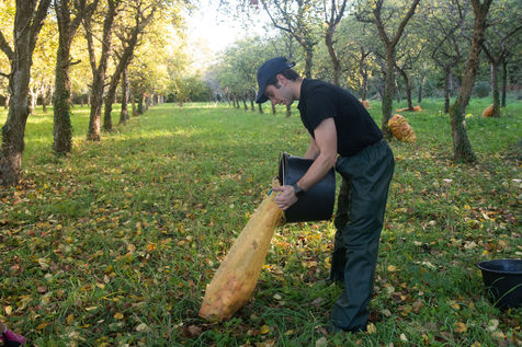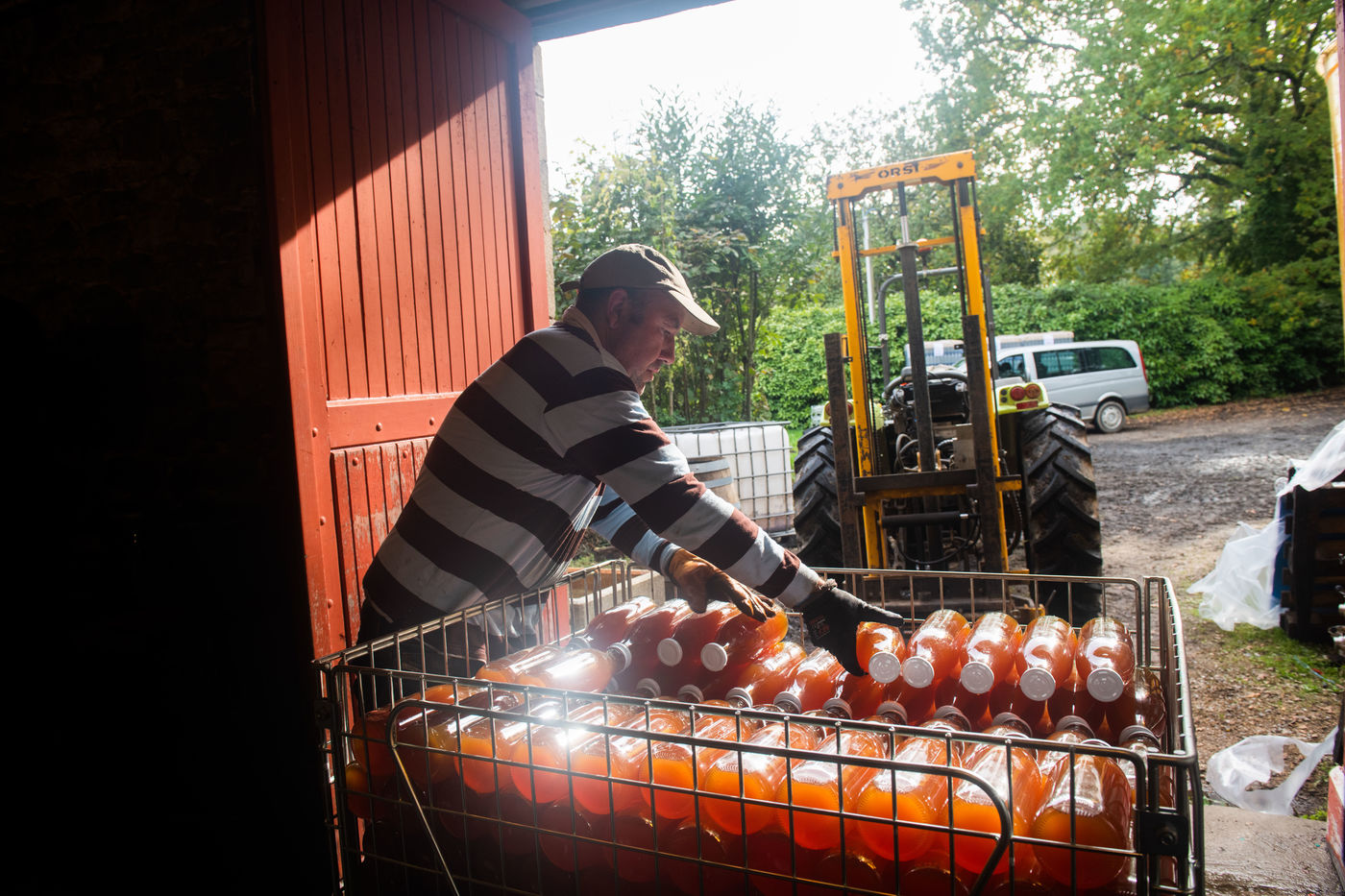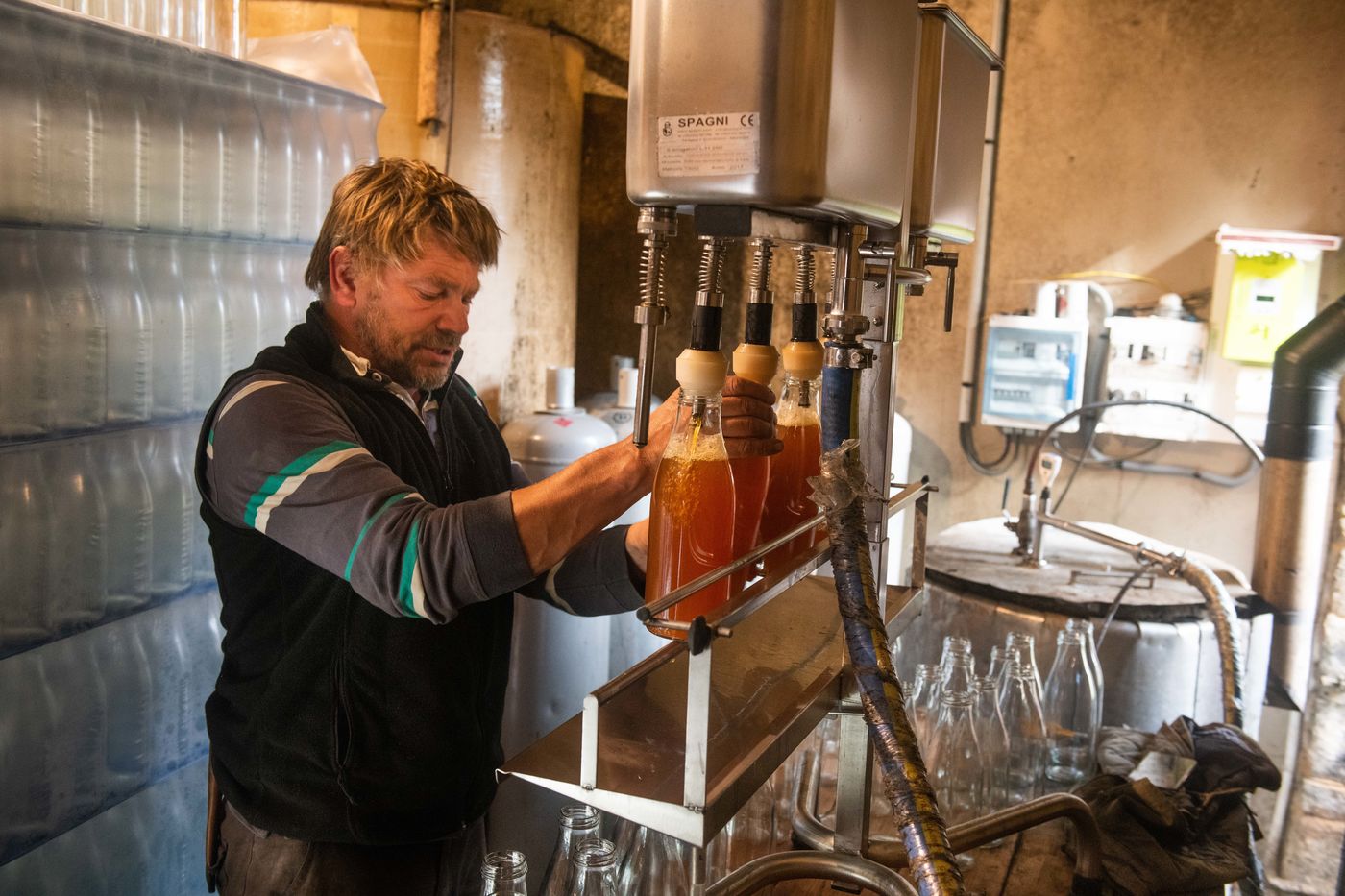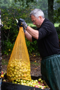 Hand picking and pressing of 50 tons of apples in the orchards of Kerdaniel, then pasteurization and bottling.