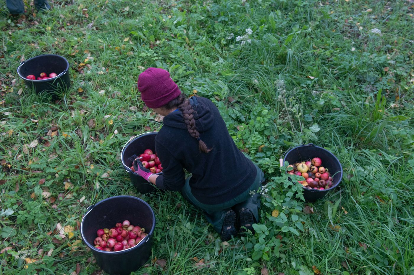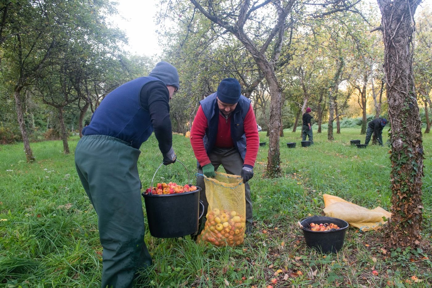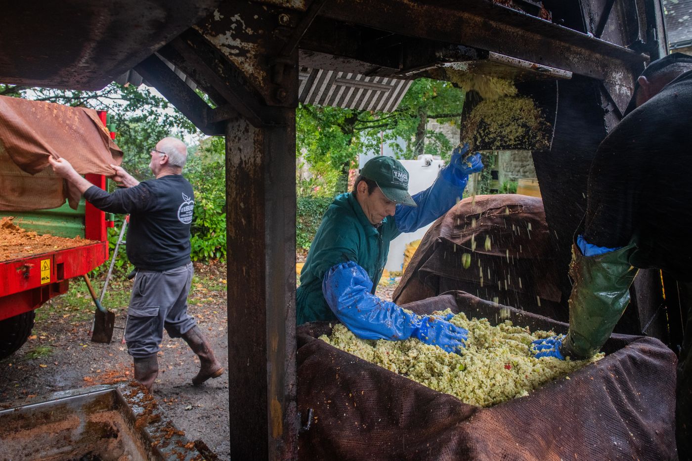Ramassage à la main et pressage de 50 tonnes de pommes dans les vergers de Kerdaniel, puis pasteurisation et mise en bouteille.