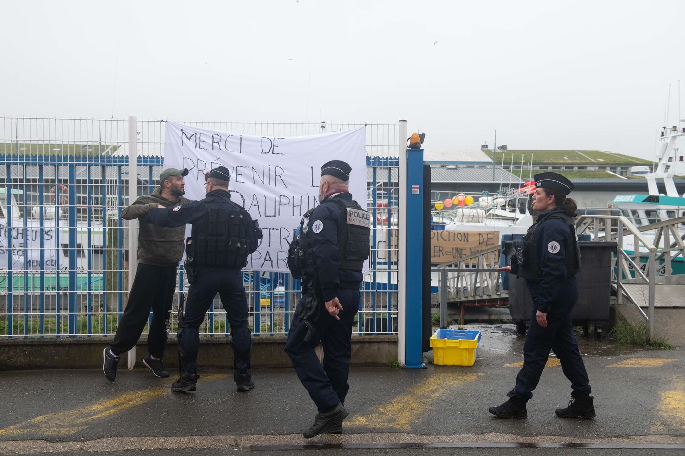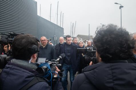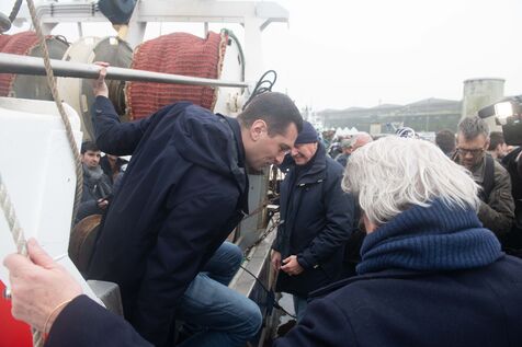 Visite de Jordan Bardella, président du Rassemblement National (RN), venu à la rencontre des pêcheurs à Lorient, le principal port pêche de Bretagne. Il a été accueilli par David Le Quintrec, un fileyeur lorientais qui lui a expliqué en autres, les contraintes qui pèsent sur leur activité comme l'interdiction de pêcher pendant un mois dans le golfe de Gascogne pour préserver les dauphins.