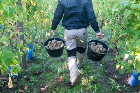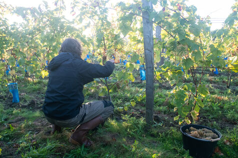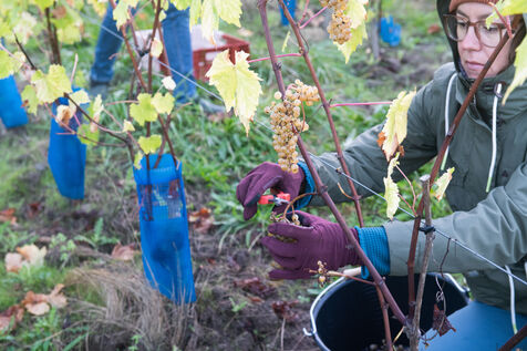 Attendues avec impatience, les vendanges fin septembre 2024 concernent les 13 000 pieds plantés il y a trois ans par Aurélien Berthou, sur 2,5 hectares de terres louées auprès du lycee Kerplouz ou il est lui même formateur en viticulture. Soreli et Muscaris, deux cépages donnant un vin blanc sec et qui devraient permettre la production de 4 à 5000 bouteilles cette année, le vin en Bretagne est lancé !