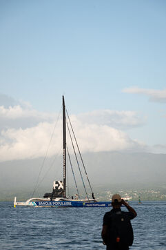 Après 8 jours de traversée de l'Atlantique, le Maxi Banque Poupulaire XI arrive en Guadeloupe au Mémorial Acte de Pointe-à-Pitre, avec à bord Marie-José Pérec qui portera la Flamme Olympique afin de partager les valeurs de l'olympisme sur son île.