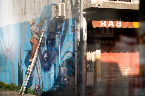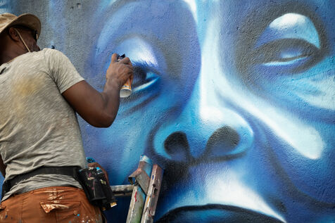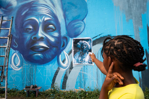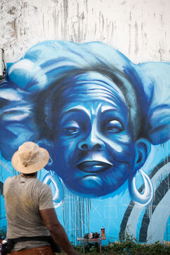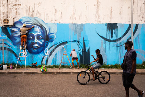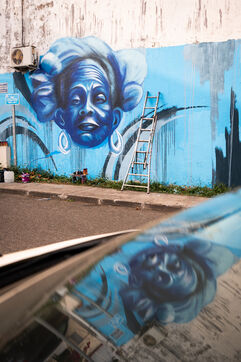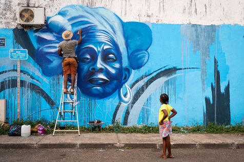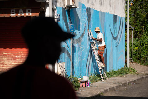 In Guadeloupe, decrepit walls and hollow spaces are not uncommon and tarnish the island's urban landscape. Guadeloupean artist and graffiti artist Macfa is creating a fresco on a decrepit wall to help beautify and improve the living environment in Baie-Mahault. This initiative, like that of his fellow graffiti artists, is based on a personal and voluntary commitment, after having contacted the owners of the walls, and has been warmly welcomed by the residents, who are rediscovering their neighborhood with a new and curious outlook.