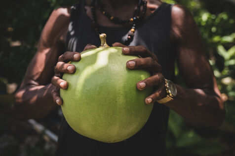 A member of the Cucurbitaceae family, the calabash is widespread in Guadeloupe. Cut in half, it is probably the oldest container in the West Indies, or kwi in Creole. This object was already used by the Amerindians and is still used in kitchens today. Decorative object, musical instrument, lamp, its uses are varied, and artists have no shortage of imagination when it comes to bringing it to light. Miky, awtist on calabash, Kimay création, passionately cultivates and works it in all its forms in her workshop in Sainte-Anne, Guadeloupe, from personalized objects to atypical lighting fixtures.