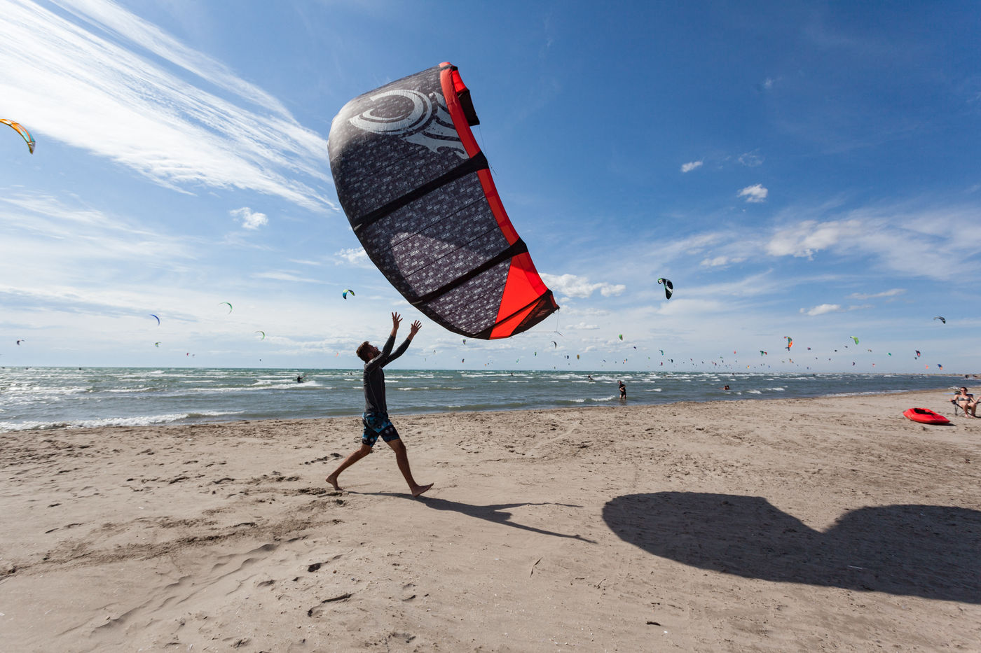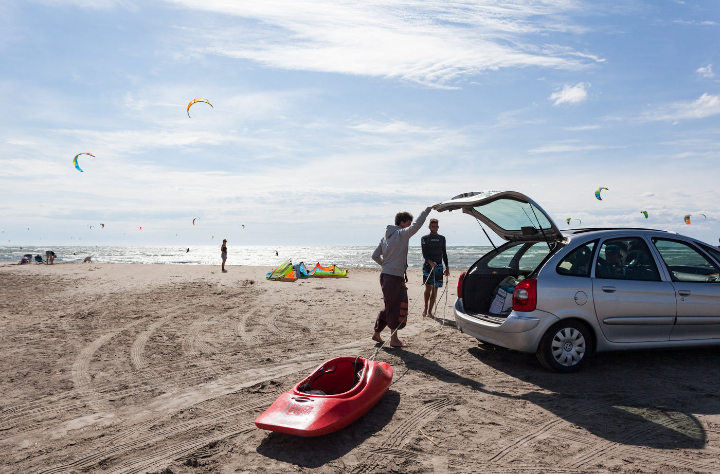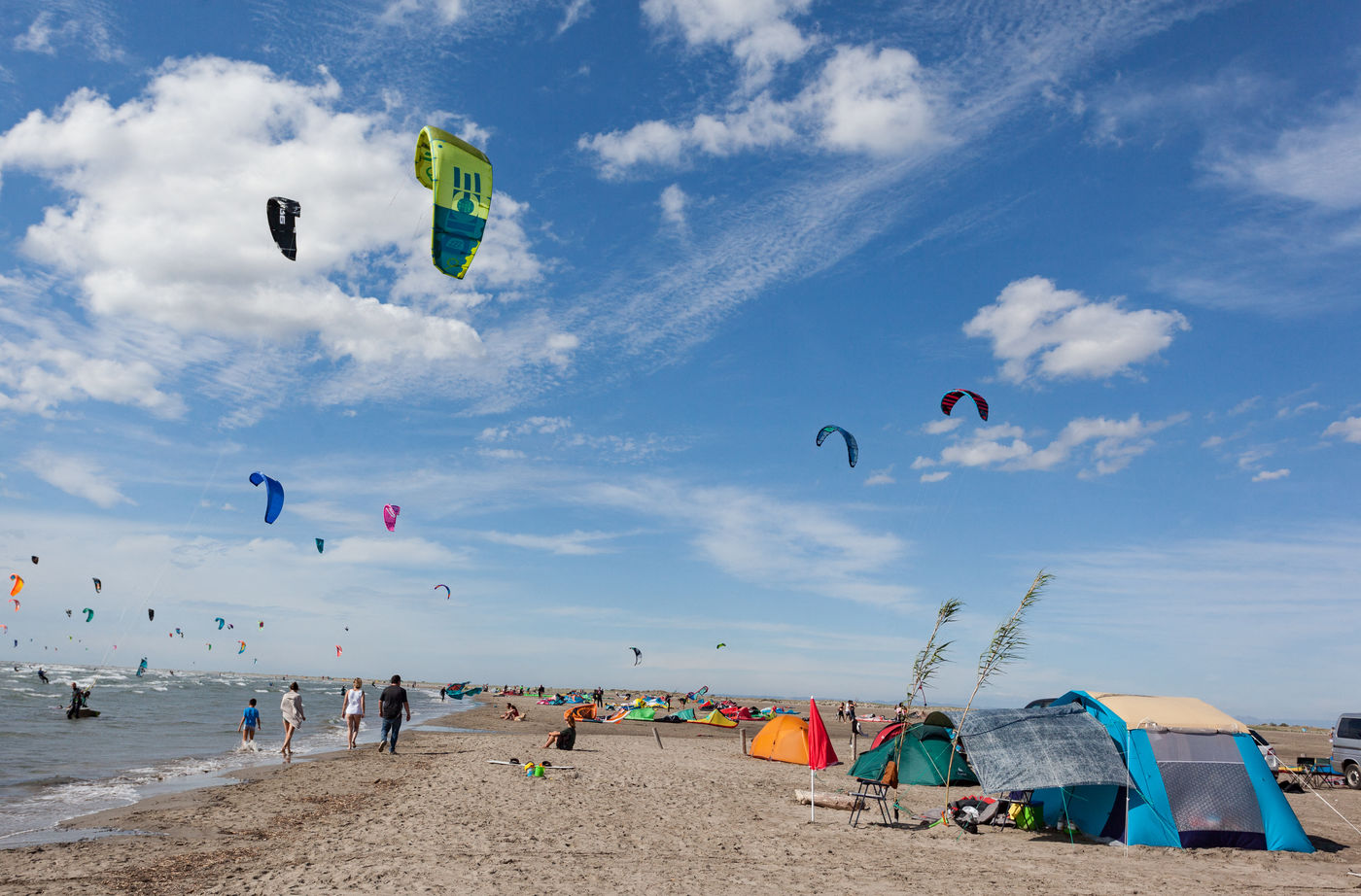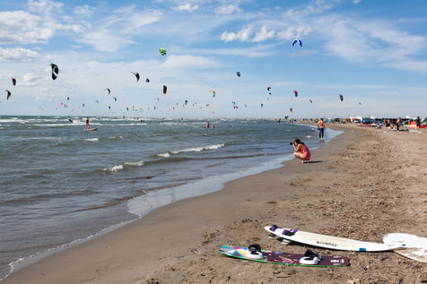 Spot de kite-surf connu; si l'on s'eloigne de la plage de kite, on découvre la lagune sauvage et cette baie qui va jusqu'aux Saintes Maries de la Mer.