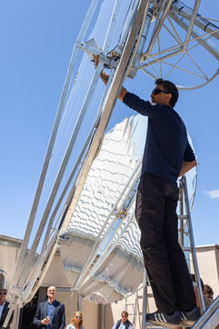 bioclimatique. Grace a deux paraboles solaires equipees de miroir, leur fourneau solaire permettra de cuisiner