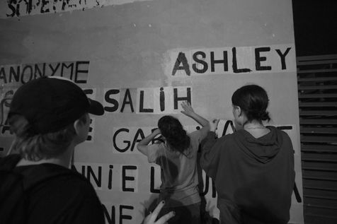 Elles s'appellent Louise, Ana, Alice , Leila, Lola ...Ces activistes ont rejoins le groupe des colleuses fondé par Margerite Stern. Elles denoncent les féminicides en France à travers des feuilles A4 blanches où sont peintes des lettres en noirà la main. Suivant des critères de textures et de lieu passant les couleuses se lancent avec précision et rapidité pour coller. Allez vite , chacune à son role pour chaque phrase. L'une passe un premier coup de pinceau , la deuxieme dispose la troisieme passe par dessus pendant qu'une quatrième guète .