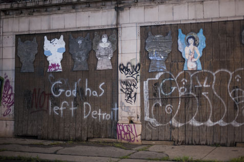 Like a child wrapping herself in her father's oversized clothes, the streets are empty, the shops are closed, and the only sign is Detroit Opportunity - Dereliction Incarnate.