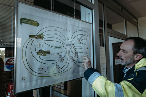 France, Val-de-Livenne, 2022-10-04, the director Grégory CROUVIZIER opens the doors of the wine distillery of Marcillac. A true ecological industry that recycles its residues, grape marc and wine lees are transformed into raw materials for the conception of products that are part of new economic circuits: grape seeds are used to produce oil, alcohols for biofuel, and grape pulp for organic fertilizers. Photograph by Claude CLIN / Hans Lucas.