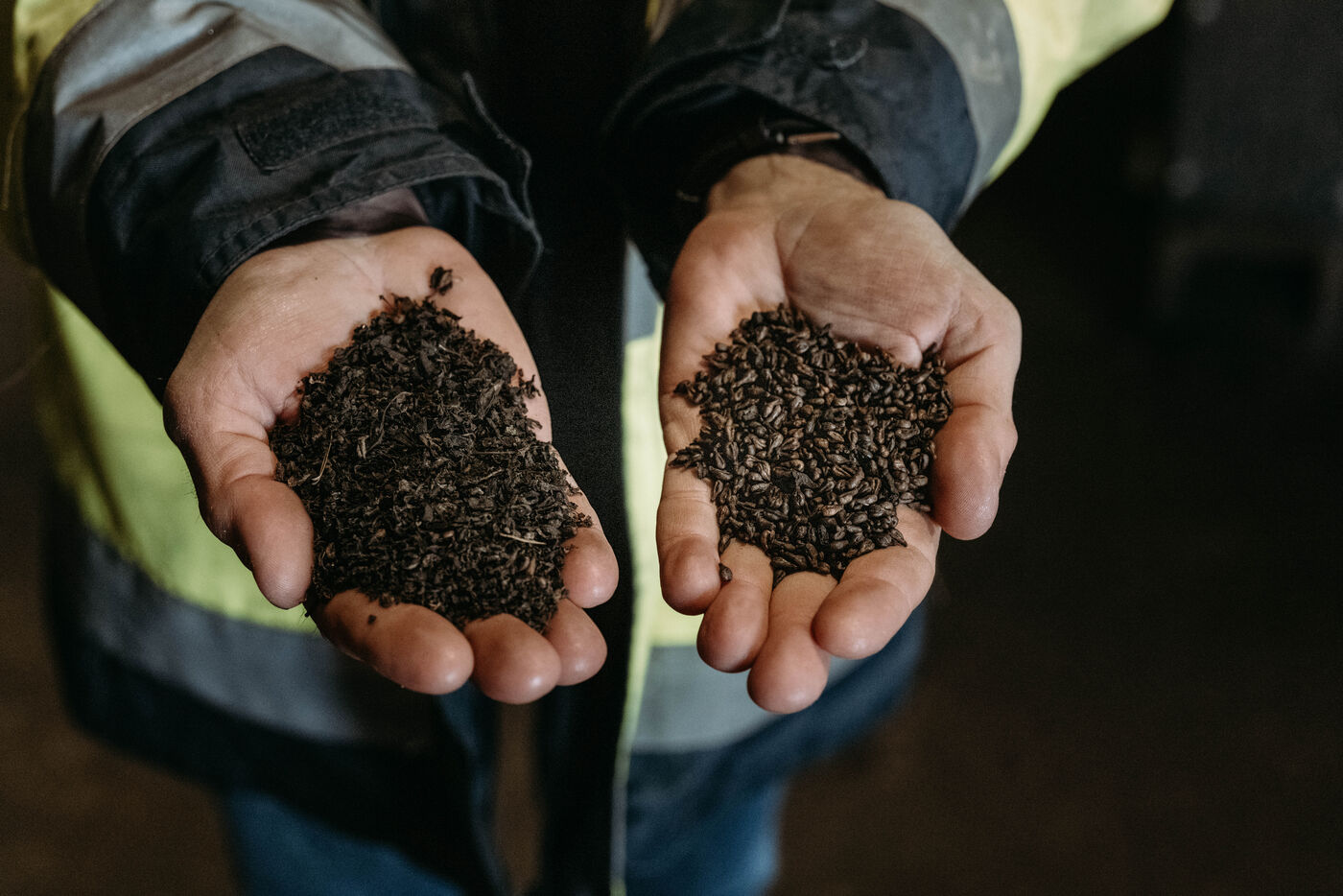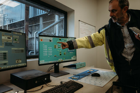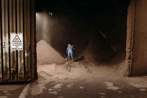 France, Val-de-Livenne, 2022-10-04, le directeur Grégory CROUVIZIER ouvre les portes de la distillerie vinicole de Marcillac. Véritable filière écologique qui recycle ses résidus, les marcs de raisins et les lies de vin sont transformés en matières premières pour la conception de produits intervenants dans de nouveaux circuits économiques: les pépins de raisin sont utilisés pour produire de l?huile, les alcools pour la biocarburation, ou encore les pulpes de raisins pour les engrais organiques. Photographie par Claude CLIN / Hans Lucas.