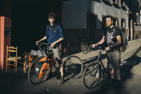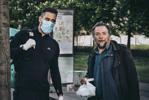 Les cyclistes se séparent. Le gros de la troupe va livrer deux autres hôtels à proximité de la gare. Pablo part de son côté pour récupérer une dizaine de burgers offerts par un restaurateur de Strasbourg qu'il connaît bien. Ils ont fait connaissance parce qu'il est livreur à vélo pour une plateforme en ligne depuis plusieurs années. En chemin il distribue déjà quelques repas à des