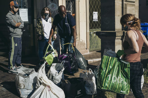 « Vous voulez cuisiner ? » Ils vous livrent à domicile les denrées récupérées dans des supermarchés, ainsi que des barquettes, des masques en tissu, des couverts en plastique. Pas besoin de sortir : ils viendront ensuite récupérer les repas pour les distribuer. Pour que cette logistique fonctionne, il leur a fallu trouver une chambre froide (mise à disposition par le Foyer Saint Paul), un camion frigorifique (mis à disposition par le Secours Populaire), un garage où stocker les vêtements et autres dons des particuliers. Rien ne les arrête. La semaine prochaine ils prévoient d'assurer une distribution hebdomadaire en plus, réservée aux étudiants, eux aussi très précarisés par la crise.