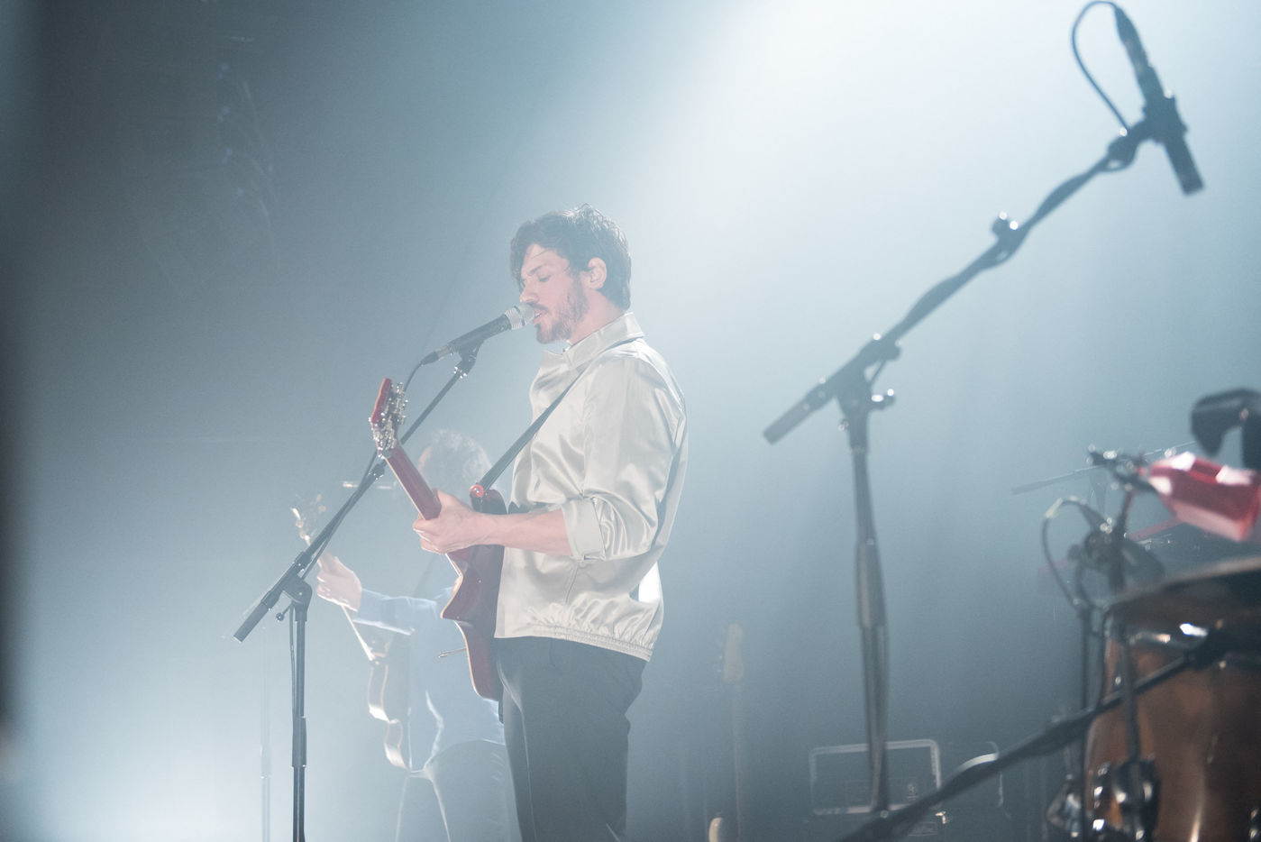 21/03/2018, Paris, France. L'auteur compositeur de 30 ans Gael Faure joue au café de la danse à Paris ce soir à l'occasion de la sortie de son troisième album, "Regain". Sur scène, il est accompagné d'Edouard Polycarpe et d'Arnaud Gavini.