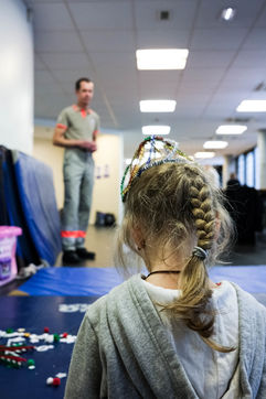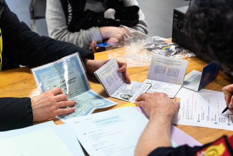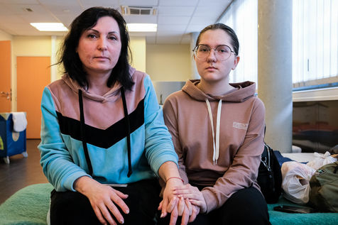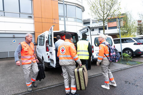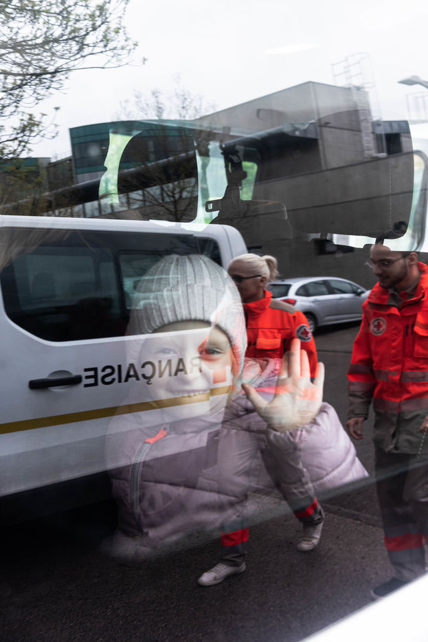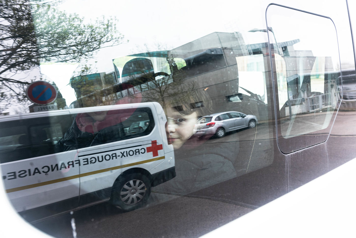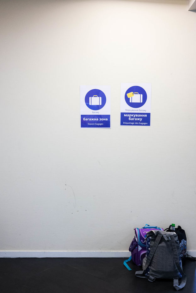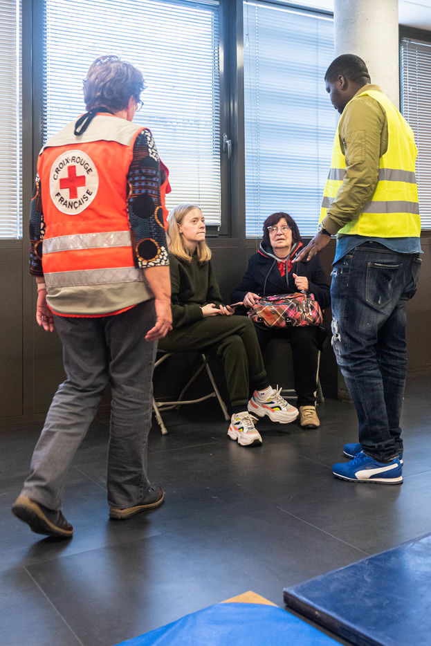 The French Red Cross has set up temporary reception facilities for Ukrainian refugees, a sort of "airlock", to allow them to deal with administrative procedures, but also to wash and rest before leaving for more permanent reception solutions. Photograph by Constance Decorde / Hans Lucas