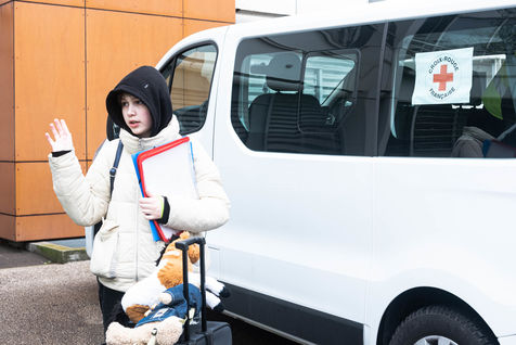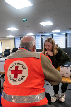 La Croix-rouge francaise a mis en place des dispositifs d accueil temporaires pour les refugies Ukrainiens, des sortes de sas, afin de leur permettre de s occuper des demarches les administratives, mais aussi de se laver et de se reposer avant de repartir vers des solutions d accueil plus perennes.