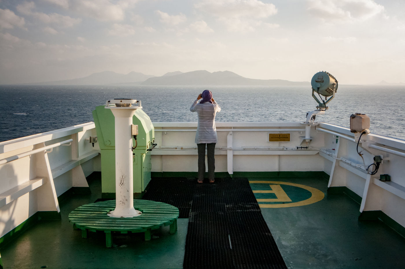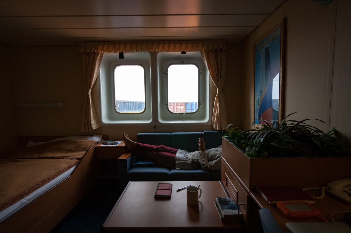 Une traversée en cargo n'est pas une croisière, c'est une expérience nomade pour voyageurs peu ordinaires qui souhaitent redonner de la valeur au temps et à la distance. Ils cherchent à retrouver le plaisir simple de s'abandonner au rêve, à la contemplation et au contentement. Sur le pont, les rôles sont inversés : le sujet du tableau reste imperturbablement immobile tandis que le décor se meut dans une lenteur déconcertante.