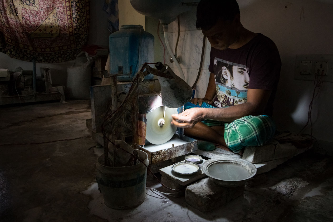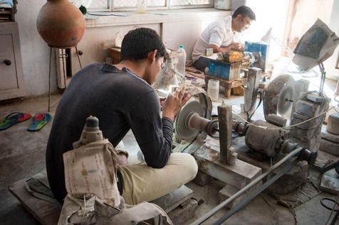 Les ateliers sont nombreux, mais c'est dans le quartier musulman de Jaipur, réputés pour la qualité de leur produits et leur savoir-faire incontesté de la taille des gemmes, que l'essentiel de l'industrie s'effectue.
