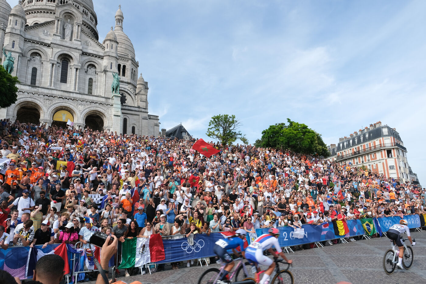 The Olympic Games women s cycling race passes in front of the Sacre-Coeur in Montmartre on 4 August 2024. The road cycling event took place on a 158km route that included some of the city s most iconic sites.