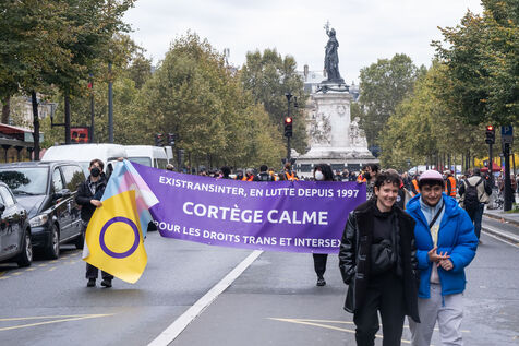 The ExisTransInter march of trans and intersex people and their supporters took place in Paris on October 12. The march calls for the protection of trans and intersex people and the assertion of their rights, such as the right to transition, access to medically assisted procreation (MAP) and the decriminalization of sex work.