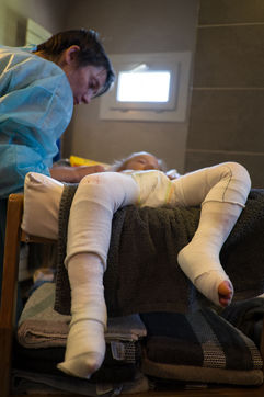 Le seul véritable traitement pour cette maladie, ce sont les soins de pansements pour désinfecter les plaies et aider à la cicatrisation. Des séances longues et parfois tellement douloureuses qu'Emilien est placé sous morphine.