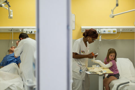 Cette unité de soins n'est pas une exception aux difficultés que rencontre le personnels soignant. Les urgences sont une immense machine où l'on passe. Ici, entre 90 et 150 personnes sont admises par jour. On y rentre douloureux, inquiet, en détresse pour ensuite s'énerver contre l'attente et le sentiment d'être oublié par les équipes.