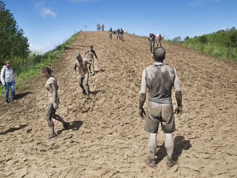 Mud day, an outstanding event. The Edition 2017 is coming soon. The next 29 and 30 april, the race will come back to the military camp of Beynes with more participants. Here is a review of the edition 2014 : Mud day is a a run of 13 km, real challenge with more 20 obstacles worthy of assault course. From 8 to 11 may 2014, more than 22000 persons participated to the edition. Crawling under barbed wire, climbing a muddy hill 10 meter feet, swimming in a 4 celcius degree cold water... For each team of 4 people, the point is not to be the best and win the race, but push the limits claim the organizers of the second annual event. Here is a report deep in the heart of the even. All the runners are so different revealing a large spectrum : man, woman, young and older, bunch of friends, people with a keen interest in sport, students, business executive, serviceman etc. The motivations are personal and differ from everybody : regressive pleasure to dive in the mud, pushing his own limits. All this barnum takes place in a festive and popular ephemeral village whith good atmosphere between bier, dj sets and food trucks. Fest and extrem effort under a certain fake sensation of personal and transgressive fulfilment : a cocktail skilfully gauged, fashionable... Military camp of Frileuse. Beynes, Yvelines - France (2014).