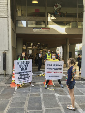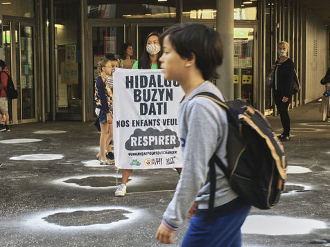 Paris. 23rd June 2020. Action of the Alternatiba movement in front of the Saint Merri elementary school in the heart of Paris, the most polluted emblematic school of the capital. Action to raise awareness on climate issues, the need for a climate and social transition. Action to question politicians and remind candidates of their commitments before the second round of municipal elections. Photograph by Chau-Cuong Le / Hans Lucas.