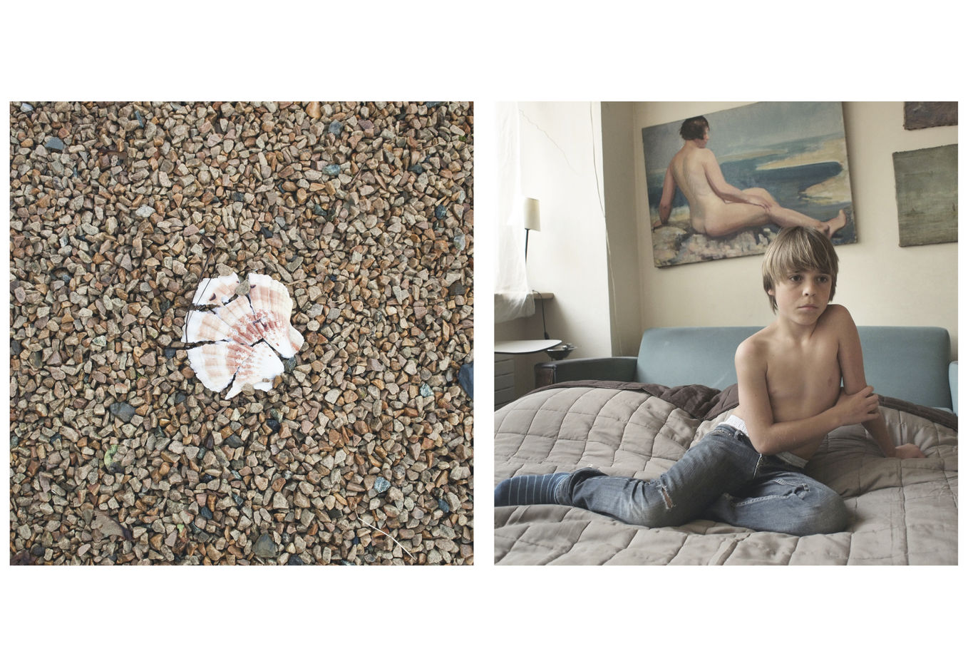 Un livre ouvert, où les images sont associées, une mise en page sous forme de diptyque. Les images sont évidemment disponibles seules.