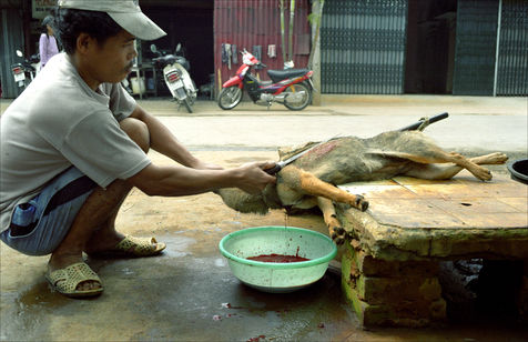 Ce reportage a été effectué en 2006 dans un village des environs de Hanoi (Nord du Viêt-Nam). Vous pourrez y voir la préparation et le commerce de chiens jusqu'à l?arrivée en table. Outre l'aspect dérangeant qui pourrait s'en dégager, ce reportage nous permet de s'interroger sur notre rapport à la nourriture, à nos propres traditions culturelles et à celles des autres pays. Serions-nous autant choqués s'il s'agissait d'images de porcs ou de boeufs ?