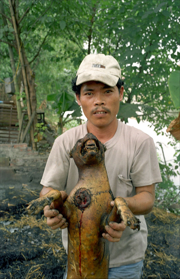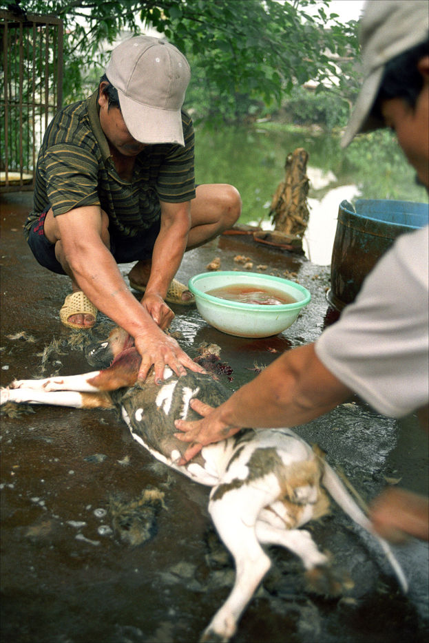 This report was made in 2006 in a village near Hanoi (northern Vietnam). You can see the preparation and trade of dogs until the arrival at the table. In addition to the disturbing aspect that could emerge, this report allows us to question our relationship to food, to our own cultural traditions and those of other countries. Would we be so shocked if it were pictures of pigs or oxen?