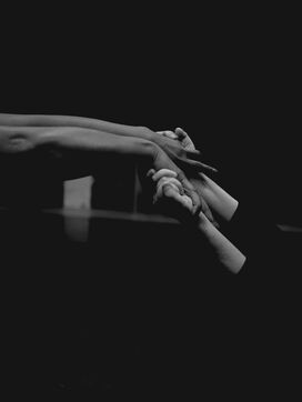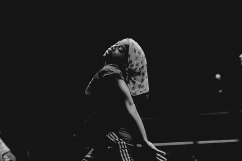 France. Tremblay in France. 2023. The Theater Louis Aragon (TLA) fell in love artistically and humanly with the project "To the extent of the silences that we leave behind us..." by Chau-Cuong Le, and gave him carte blanche in inviting people to share moments from the life of the theater in Tremblay, France. From March to July 2023, Chau-Cuong Le met and documented in images La Belle Jeunesse, the work of choreographers Khoudia Toure, Melanie Perrier and Lumi Sow, the TLA team, the spectators, Voile les femmes, the Team of France in Contemporary Dance... Part of his images illustrate the 2023-2024 season brochure of the Théâtre Louis Aragon. A special edition comes as a complement to discover his work with the TLA. It was a question of taking into account the values defended by this national scene: culture, openness to the world, brotherhood, sharing, proximity, transmission, link to nature, body and movement, gesture, intergenerational, youth. Here is an overview transcribing a bias where the evocation of bodies and movement in chiaroscuro were favored during different workshops and key dates in the life of the theater. The vision in metallic gray is here covered in darkness to participate in this desire to approach in detail, to attract attention by observing a look, a gesture, a flutter of eyelashes...