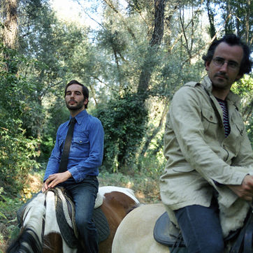 Portrait des Hey Hey My My alias Julien Gaulier et Julien Garnier. Groupe de folk rock français. Commande par le label Sober and Gentle pour la sortie du premier EP du groupe. Fenouillet, région de Toulouse (France, 2005)