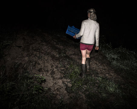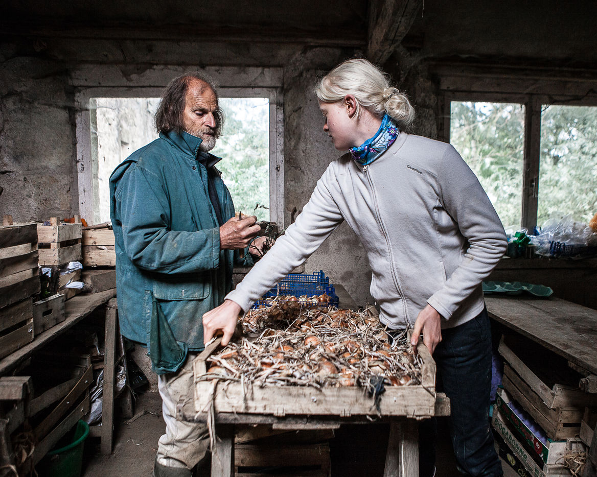 The land around the Moulin de Braux does not have the qualities required for market gardening. The earth is clay and sticky, hard to work. Today, market gardeners prefer to settle in the Val de Saône where the soil is more sandy, loose. Luc has been growing vegetables since the early 1980s and is one of the pioneers in organic farming. For Luke, cultivating is a real commitment and he has an unwavering faith in work. His way of working has remained quite archaic, weeding by hand, we also harvest everything manually, new technologies in organic farming (thermal weeding, agricultural machine for harvesting certain vegetables) do not seem to have arrived until Moulin de Braux. Probably by choice at the start (because intensive organic farming has other environmental impacts, chemical weeding killing soil biodiversity ...) and ultimately constrained by the vicious circle of relentless and hard work in order to produce sufficient quantity and satisfy demanding customers. Luc usually receives a large number of WWOOFers but today they are rare at the Moulin. (WWOOF - "World-Wide Opportunities on Organic Farms" - is a global network of organic farms. The hosts offer to welcome WWOOFers to share their knowledge, know-how, daily life and activities with the possibility for the latter to be housed and fed). Gérald is hired full-time at the Moulin, in addition to a second half that changed during the year. He sleeps there all week because he comes from far away. The arrival of Isabella, an 18-year-old German girl who came as part of Franco-German ecological volunteering to spend a year as a volunteer at the Moulin de Braux, was of great help to the Mill. Isabella started her year of volunteering in September 2015 and left in September 2016. This initiation experience was difficult even if she took up the challenge that she had set herself. For the anecdote, she was spotted at the height of her 1m85 to do modeling, she finally refused this offer and continued her work as an apprentice vegetable farmer in organic farming ...! This place is atypical and it attracted me from the start because despite the fact that it is completely isolated in rural areas, we come across all kinds of nationalities, we speak a little French, a little English ... We lead there a spartan, almost monastic life where alcohol and tobacco are prohibited and where every day the rituals of work and life are alike and repeated, only the capricious weather can sometimes change the course of things. This mode of production does not leave much choice, everyone is forced and forced daily to do more than their quota of hours. The asceticism that reigns there creates a very special atmosphere that I tried to capture as closely as possible. Finally, this exploitation is far from intensive production methods which also offer lower costs and allow more people to access organic products (with other drawbacks elsewhere). Finally, this also raises the thorny question: could we feed the planet with this approach to organic farming? The subject divides especially today when some want to ban glyphosate while others fear the extinction of farmers slowly ...