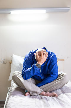 Portrait anonyme d'un policier ayant fait une tentative de suicide avec son arme de service. Actuellement à la Clinique du Val Dracy dans l'unite "La robe et l'uniforme", unite spécifique pour tous les professionnels issus du Ministere de la Justice, du Ministere de l'interieur et du Ministere de la défense.