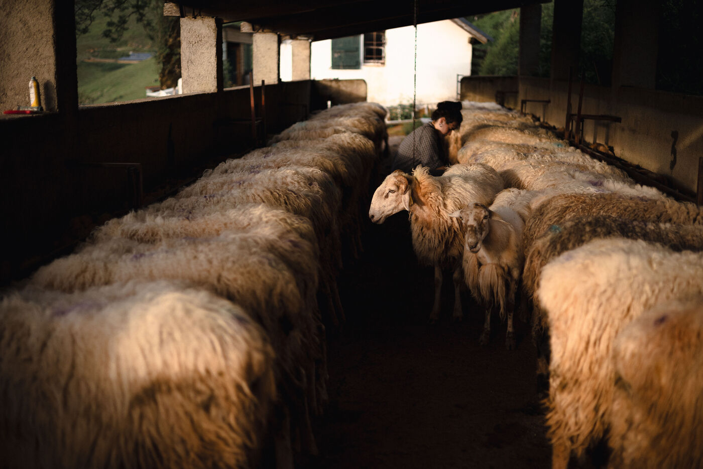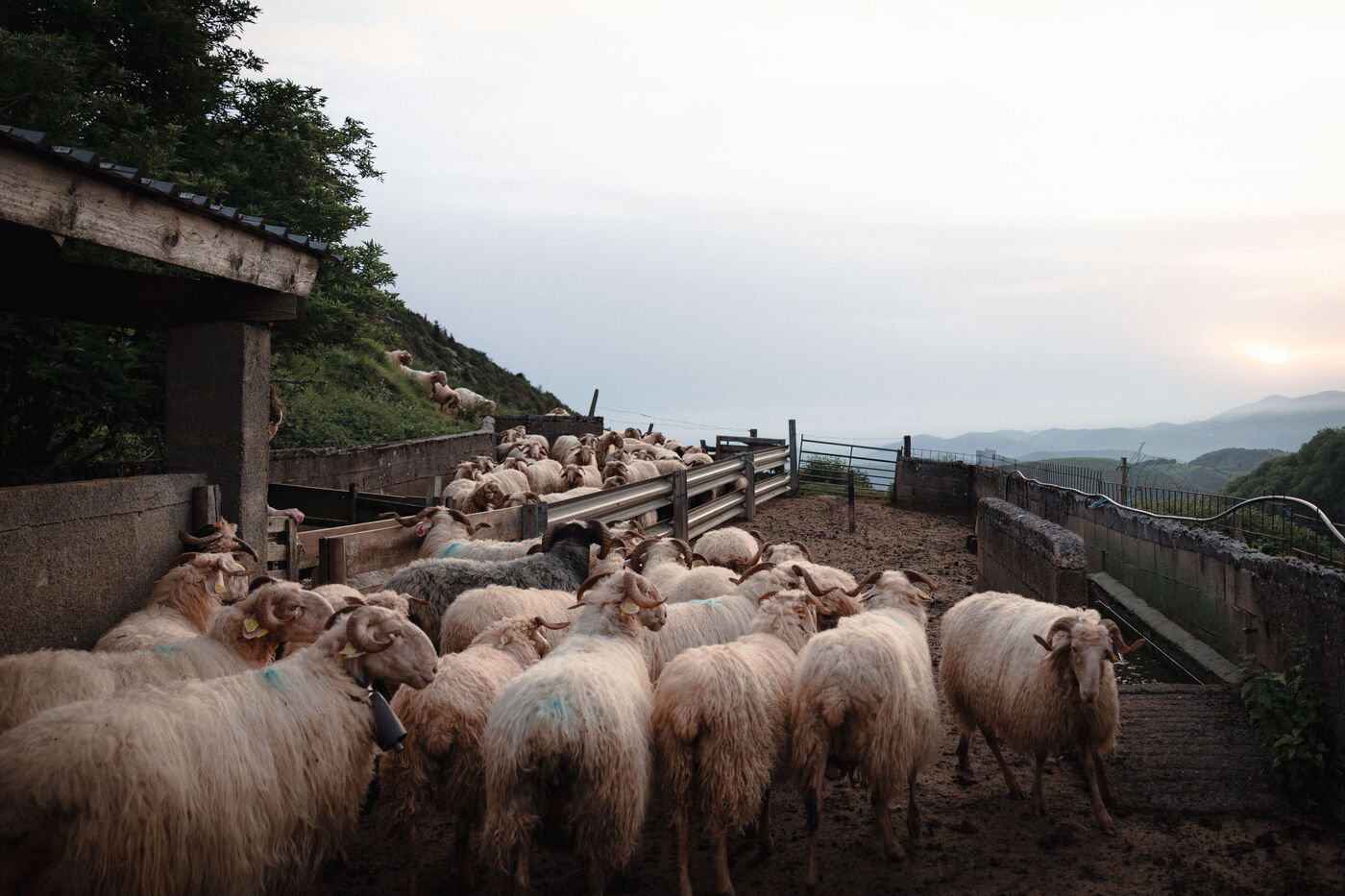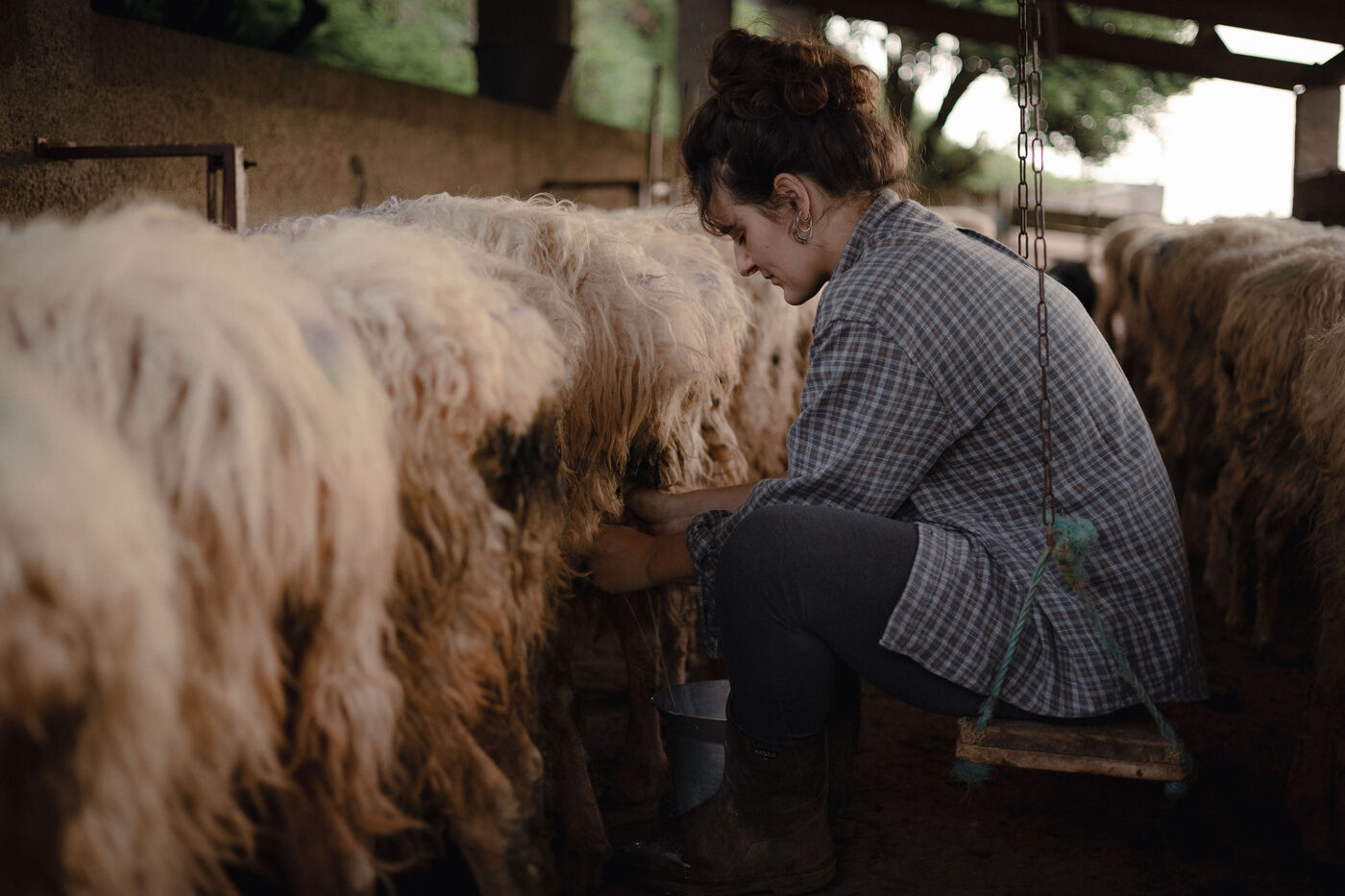 At the time of this series, Claire, a very experienced young Basque shepherdess, is part of the replacement service. That is to say, she replaces an absent or sick shepherd. In this case, she replaces a shepherdess who is on maternity leave. But that does not change the daily work that must continue to be done with the ewes. It is June, the herd is in the mountain pastures, at an altitude of about 1,000m. Every morning, the sheep must be gathered at the coral and milked. In the mountains, milking is done by hand. The milk is poured, as it is, into a can after being filtered to stop dust, twigs and other impurities.