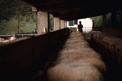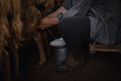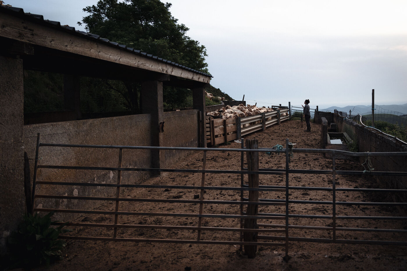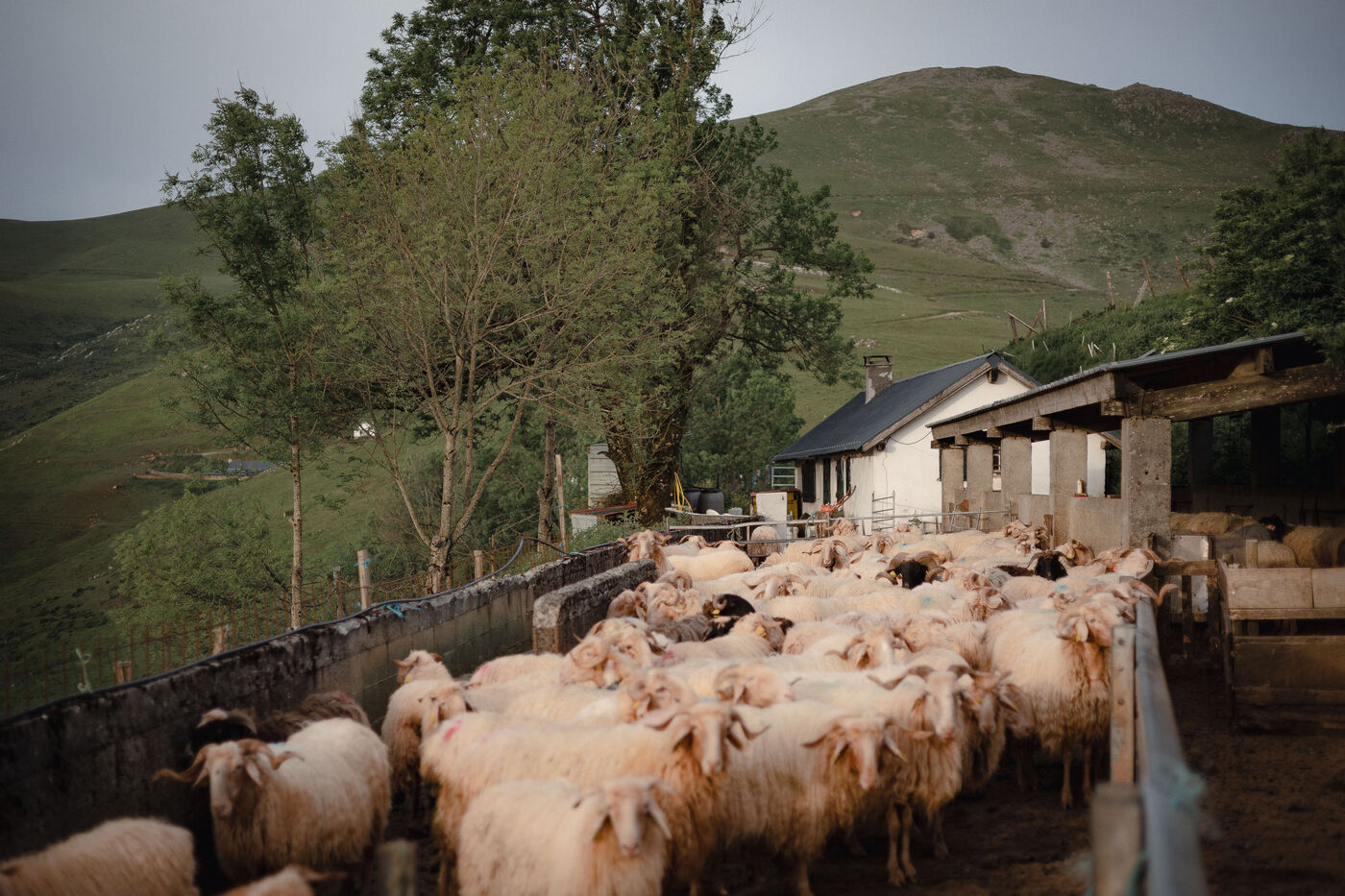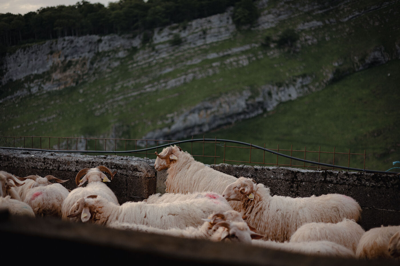 At the time of this series, Claire, a very experienced young Basque shepherdess, is part of the replacement service. That is to say, she replaces an absent or sick shepherd. In this case, she replaces a shepherdess who is on maternity leave. But that does not change the daily work that must continue to be done with the ewes. It is June, the herd is in the mountain pastures, at an altitude of about 1,000m. Every morning, the sheep must be gathered at the coral and milked. In the mountains, milking is done by hand. The milk is poured, as it is, into a can after being filtered to stop dust, twigs and other impurities.