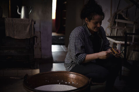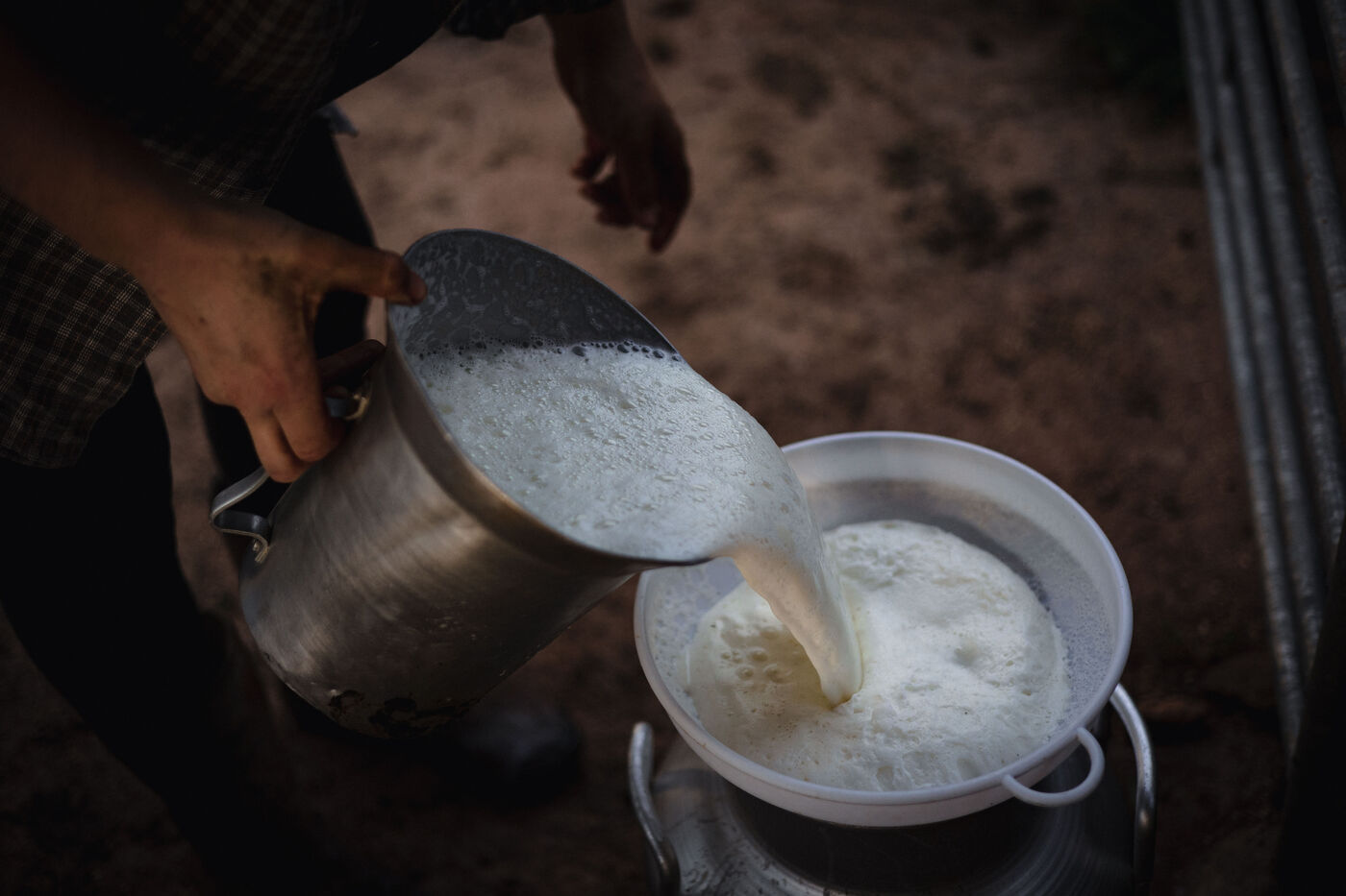 Immediately after milking, the cheese must be made, because there is no milk tank here. In any case, there is no electricity and the power supply of the cabin with a small solar panel would not be enough to operate such equipment.